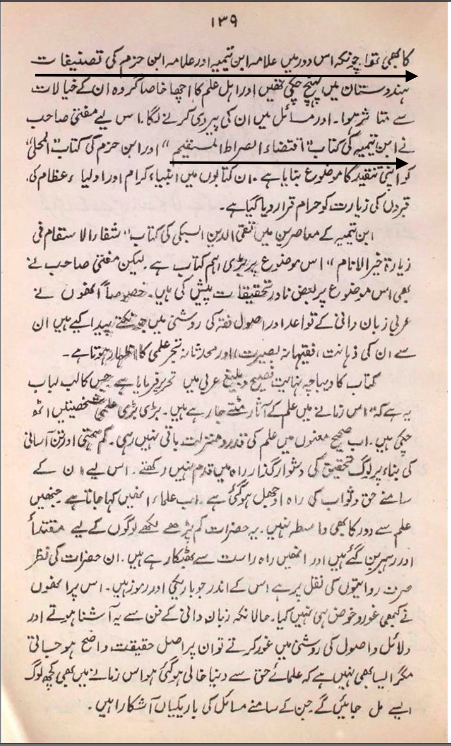২. তার লেখনী মূলত: হানাফী মাজহাব ও আহলে সুন্নত ওয়াল জামাতের বক্তব্য খন্ডনের উদ্দেশ্যে লিখিত।৩. হানাফী মাজহাব ও আহলে সুন্নতের উলামায়ে কেরামের সাথে যেন সে প্রতিপক্ষ হিসেবে কথা বলেছে।