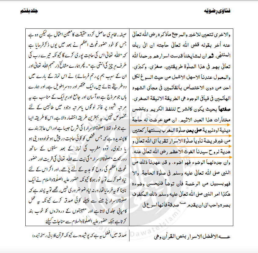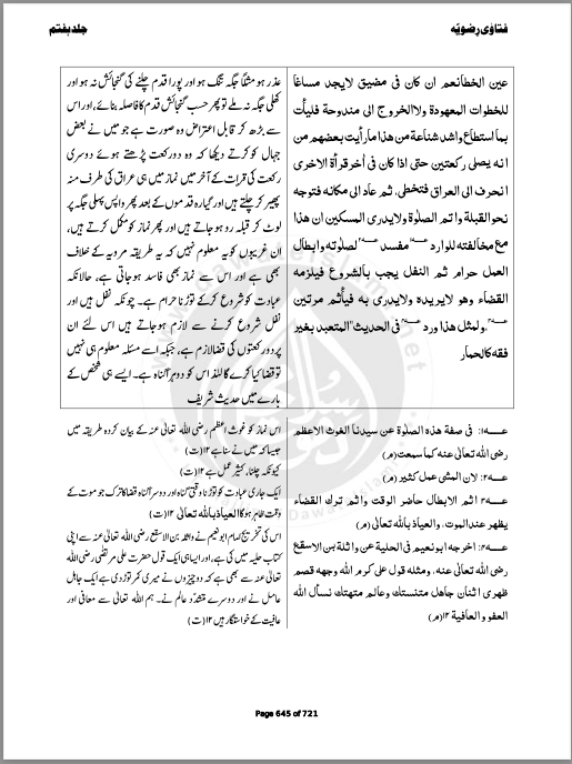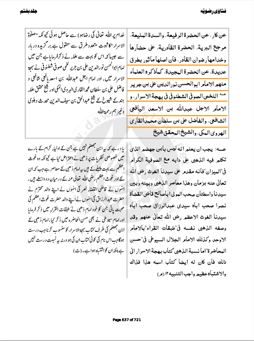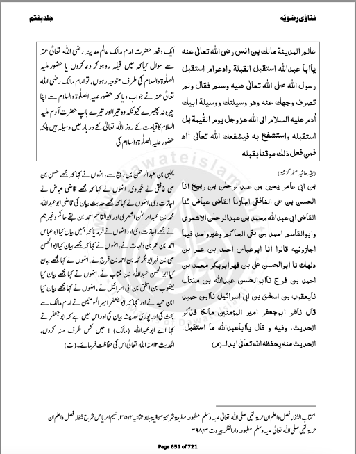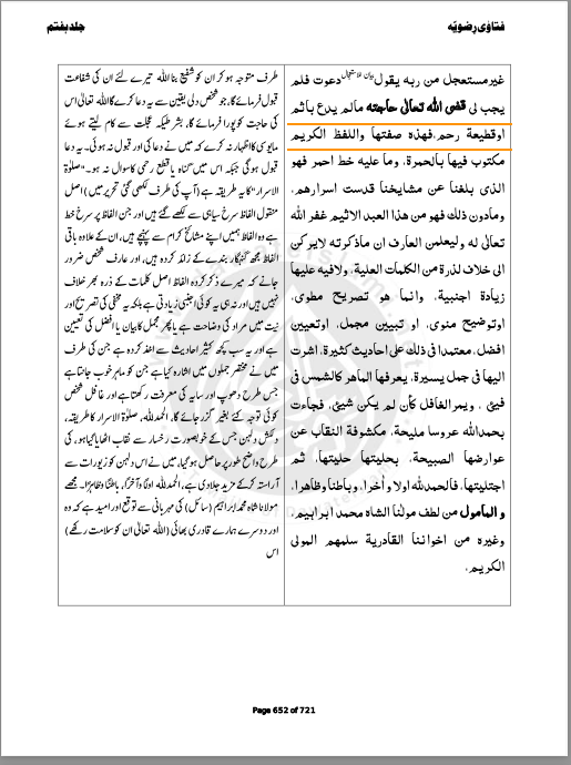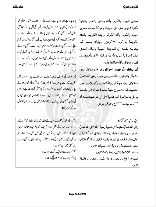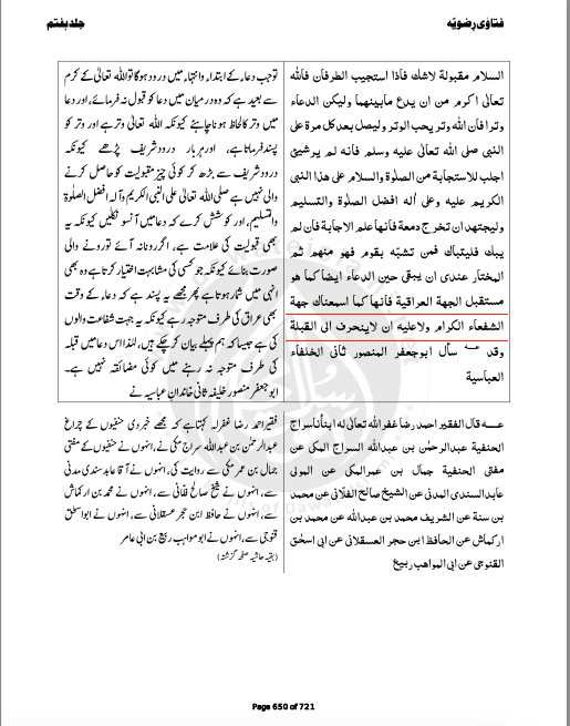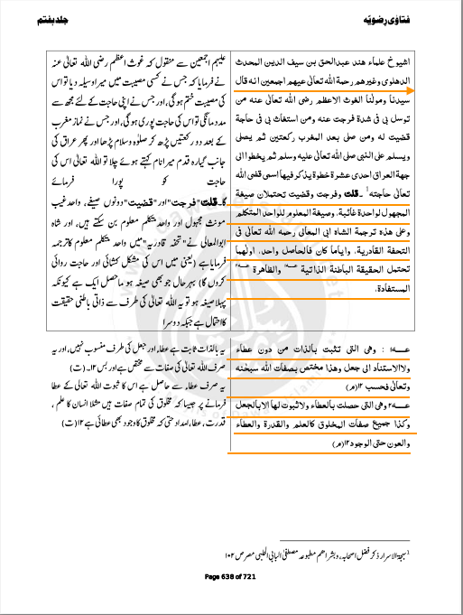 (ফতোয়ায়ে রিদাভিয়্যা, খ: ৭, পৃ: ৬৩৭-৬৩৯)